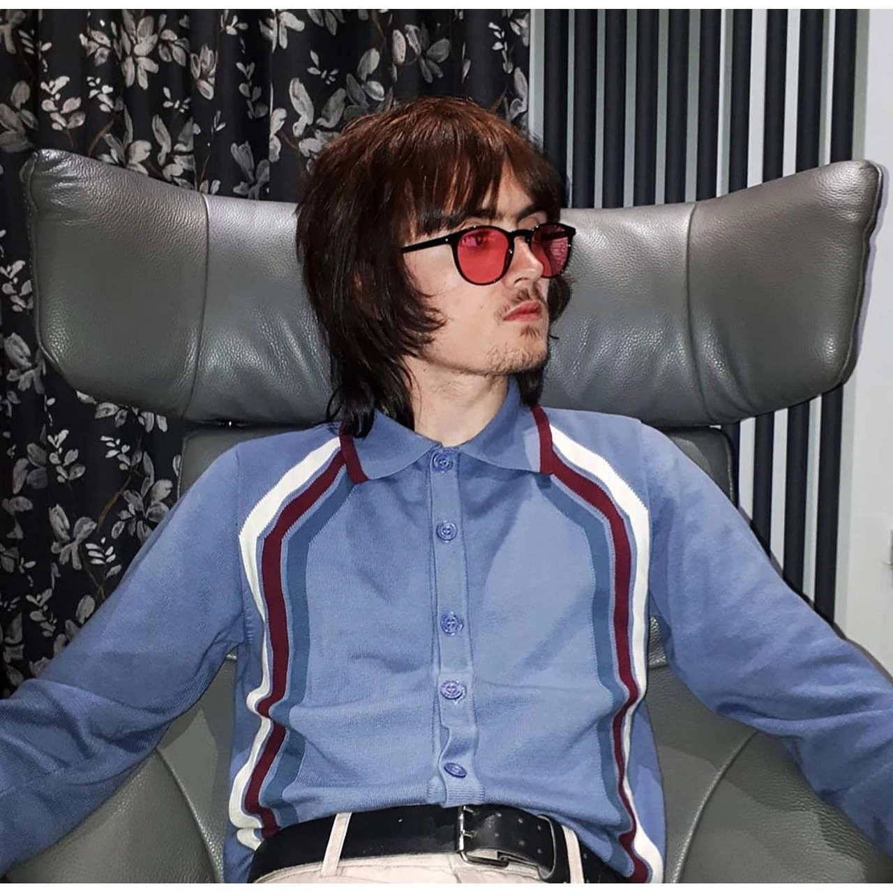 - Madcap England ‘Blast’ men’s mod stripe button through polo cardigan.