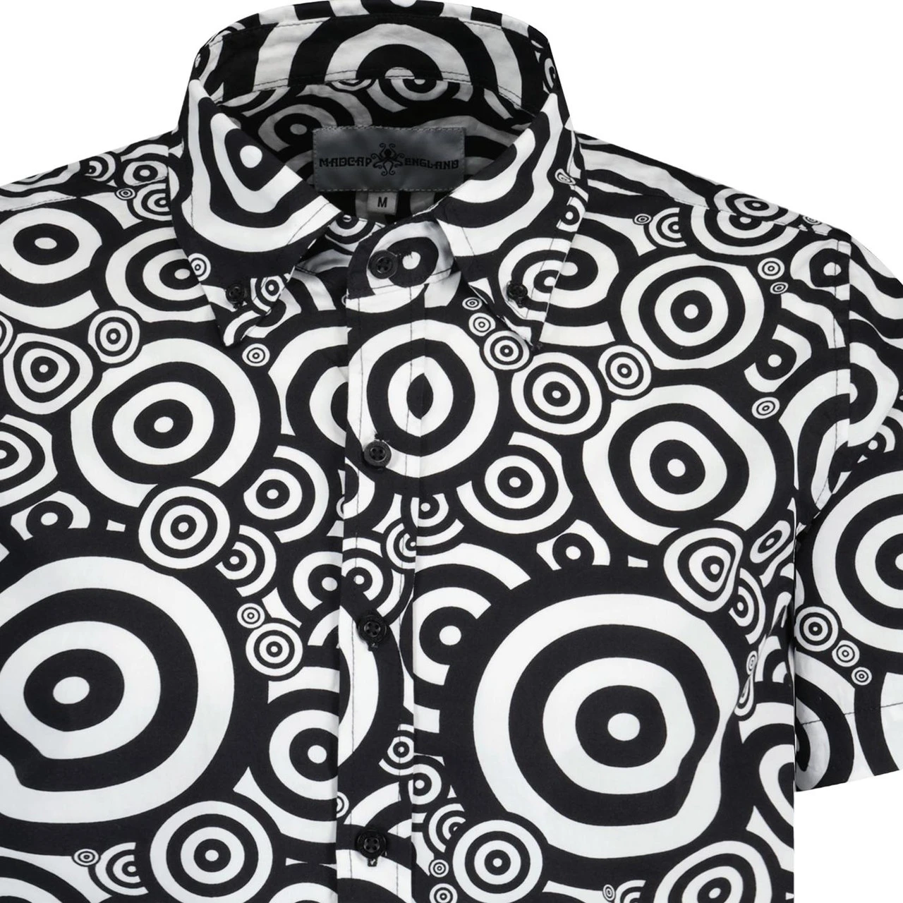- Striking monochrome 60s psychedelic target print.